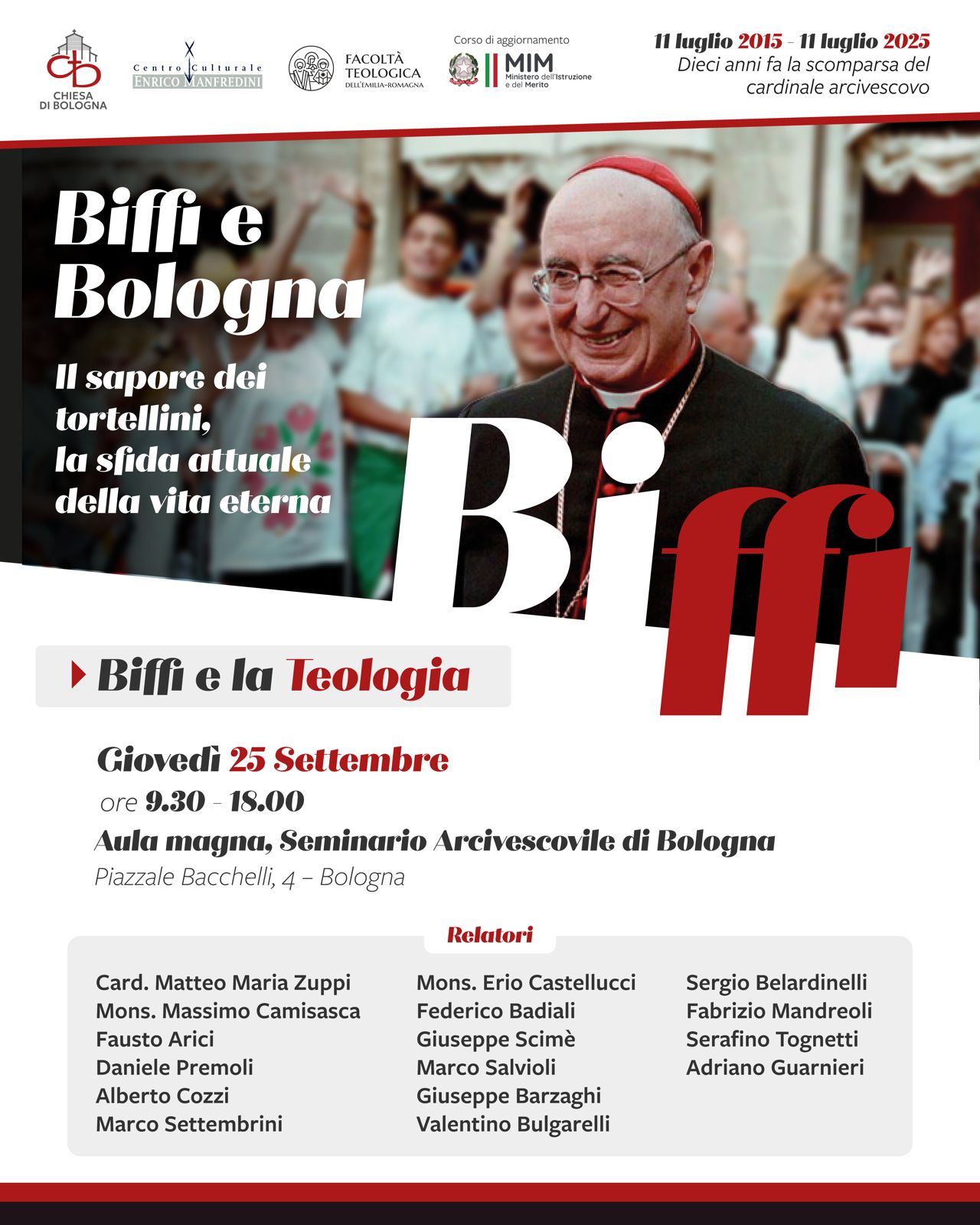 Nella rassegna di eventi proposti in occasione del 10° anniversario della scomparsa del cardinale Giacomo Biffi dalla Chiesa di Bologna, la Fter organizza una giornata di studio sul contributo del già arcivescovo di Bologna alla teologia e alla città. L’incontro si terrà giovedì 25 dalle 9.30 nell’aula magna del Seminario arcivescovile (piazzale Bacchelli, 4).