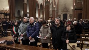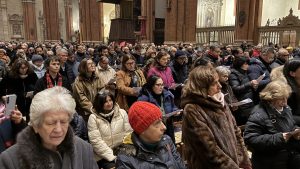 Il mondo ha bisogno di persone di speranza di case di pace e non violenza dove possiamo iniziare oggi a vivere relazioni umane. «Chiediamo pace e speranza – ha proseguito – per i giorni che verranno e apriamo le porte del cuore e delle nostre comunità con l’accoglienza cioè con un tratto gentile con il sorriso, con la mitezza con la semplice disponibilità ad aiutare. Non si ringrazia perché abbiamo risolto i problemi o perché abbiamo tutte le certezze e rassicurazioni, ma solo perché siamo pieni della forza del Signore, cioè del suo amore, perché siamo figli, amici e non servi. Siamo suoi, legati al suo amore che non delude e che viviamo nel nostro cuore e nelle nostre relazioni. È il suo amore che dà senso all’ora del tempo umano che chiede l’eternità, cioè ciò che non finisce».