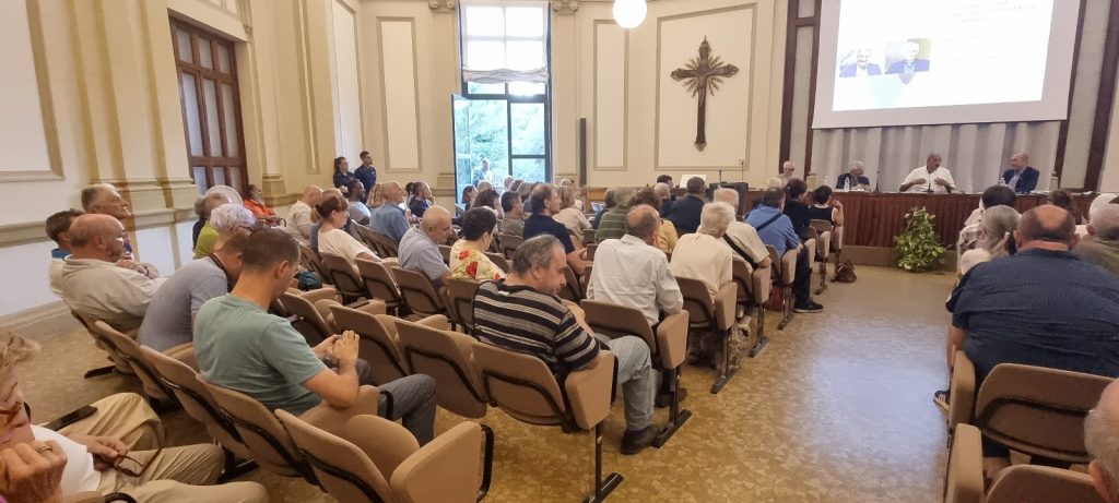 A fare gli onori di casa monsignor Marco Bonfiglioli, rettore del Seminario Arcivescovile, promotore dell’evento. «È una bella occasione anche quest’anno per incontrarci – ha affermato – in questa casa per tutti i bolognesi che in questi giorni è aperta a tutti. È il luogo della formazione dei seminaristi, ma non solo, è il luogo di tanti incontri della nostra Chiesa Bolognese e in queste giornate vuole essere il luogo di tutti i bolognesi che desiderano venire qui per un momento, un incontro, per visitare le mostre e per partecipare alla festa dell’Assunta con la Messa presieduta dall’Arcivescovo». All’incontro è intervenuta anche Irene Priolo, attuale Presidente Facente Funzioni dell’Emilia-Romagna che ha spiegato: «Possiamo considerare Marconi come il precursore dell’Intelligenza Artificiale, la capacità di collegare il mondo, una comunicazione globale che ha cambiato la storia e la storia della telecomunicazione».