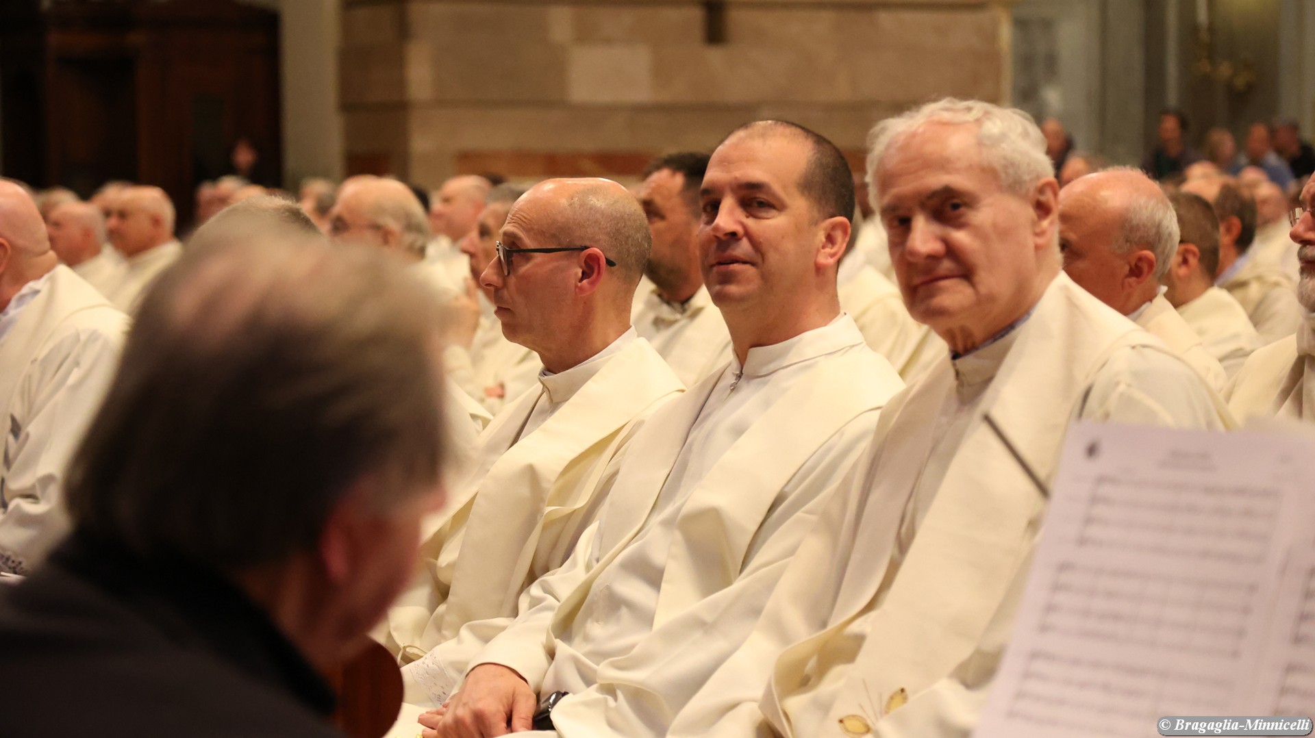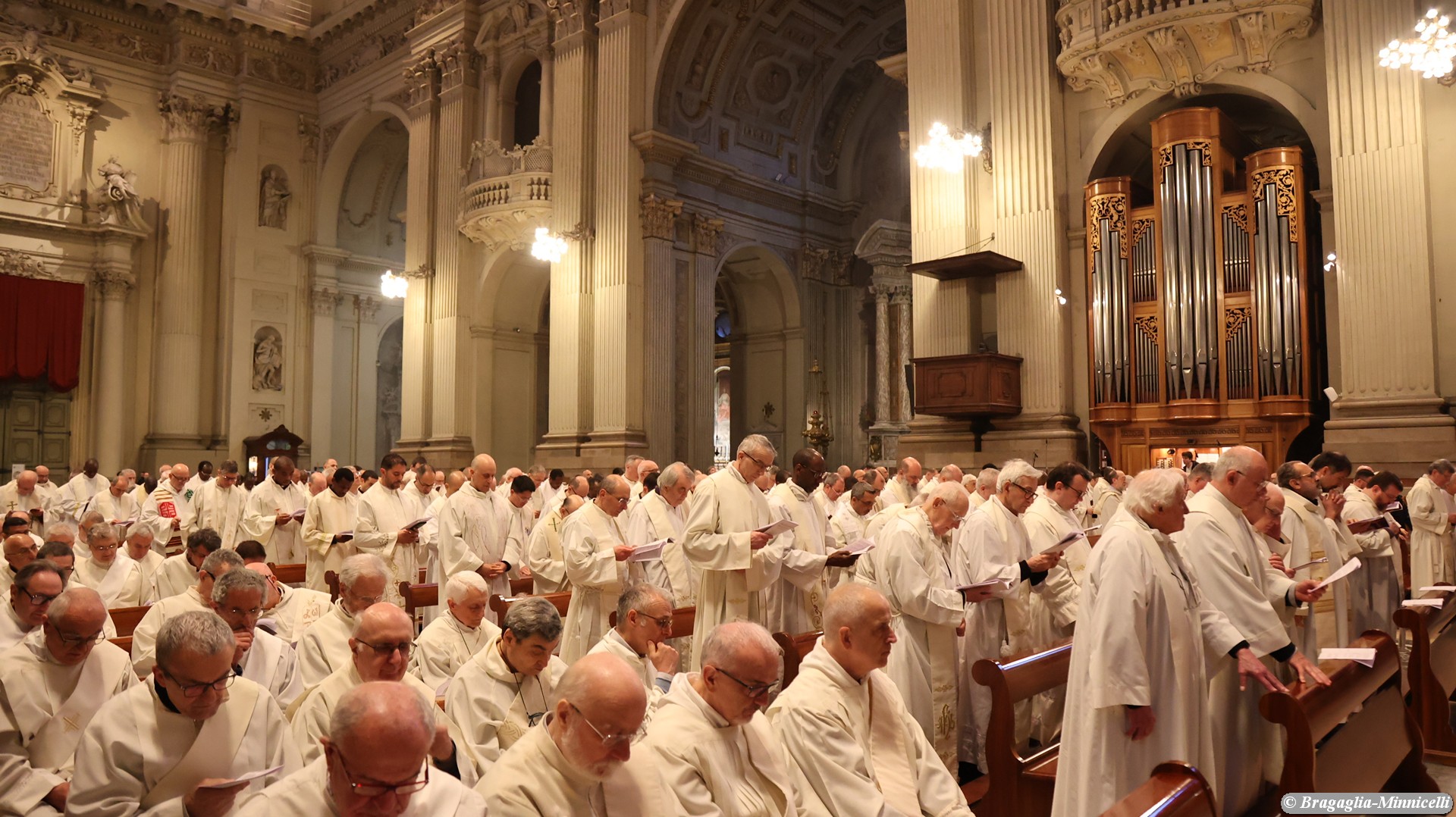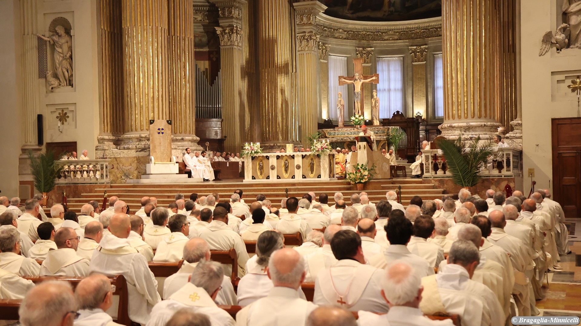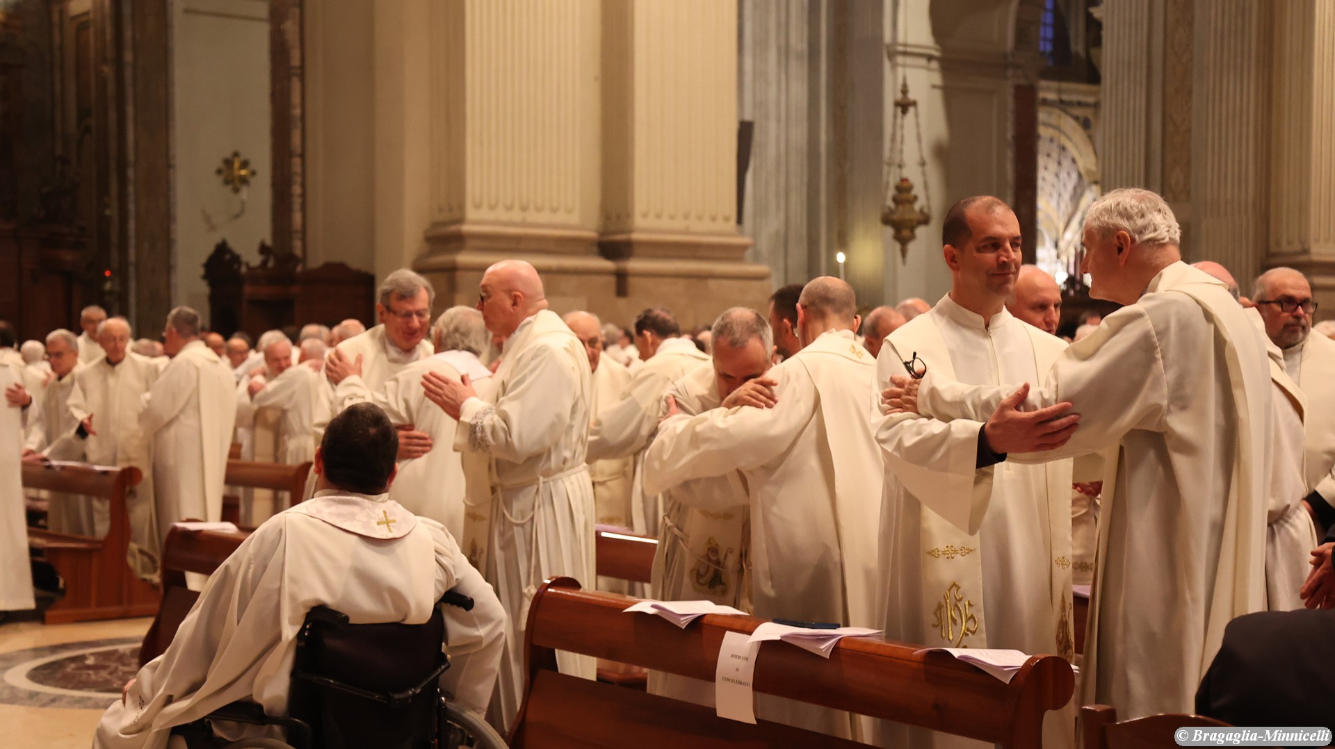 «La nostra comunione – ha proseguito il cardinale Zuppi – ci aiuta a ritrovare il senso della mia e nostra vocazione ministeriale che ci fa rivivere l’amore dell’inizio che si trasforma e che può sempre crescere. Corriamo il rischio di cercare senza passione, di annunciare connvinti che nulla cambia davvero. La speranza ci invita a non smettere di ambiare perché l’amore trasforma quello che è vecchio e lo fa nascere di nuovo, rende il peccato pienezza di grazie».