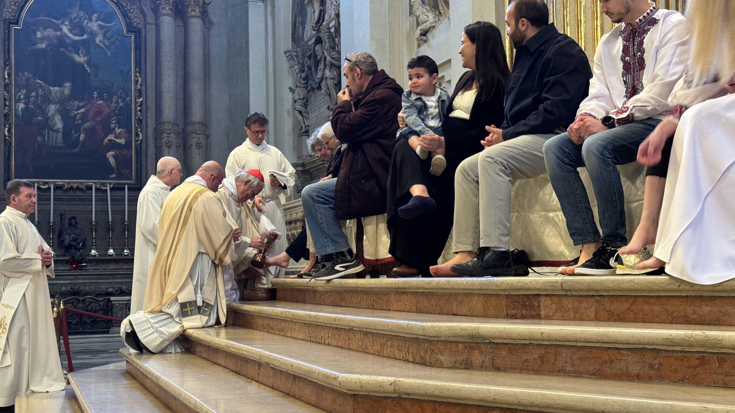 L’arcivescovo ha lavato i piedi a una famiglia ucraina, una palestinese e ad alcune persone fragili del centro storico assiste dalle realtà caritative.
