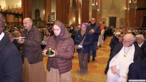 La processione offertoriale è stata composta dalle rappresentanze delle comunità dei nove luoghi giubilari dell’Arcidiocesi: la Cattedrale, il Santuario della Madonna di San Luca, il Santuario di Boccadirio, Monte Sole, il Villaggio “Pastor Angelicus”, il Santuario de Le Budrie, Pieve di Cento, Poggio Piccolo di Castel San Pietro e Campeggio.