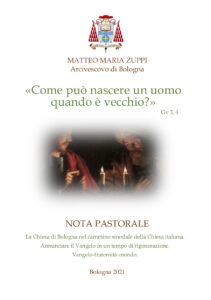 Titolo della Nota Pastorale «“Come può nascere un uomo quando è vecchio?” (Gv 3, 4). La Chiesa di Bologna nel cammino sinodale della Chiesa italiana. Annunciare il Vangelo in un tempo di rigenerazione. Vangelo-fraternità-mondo».
