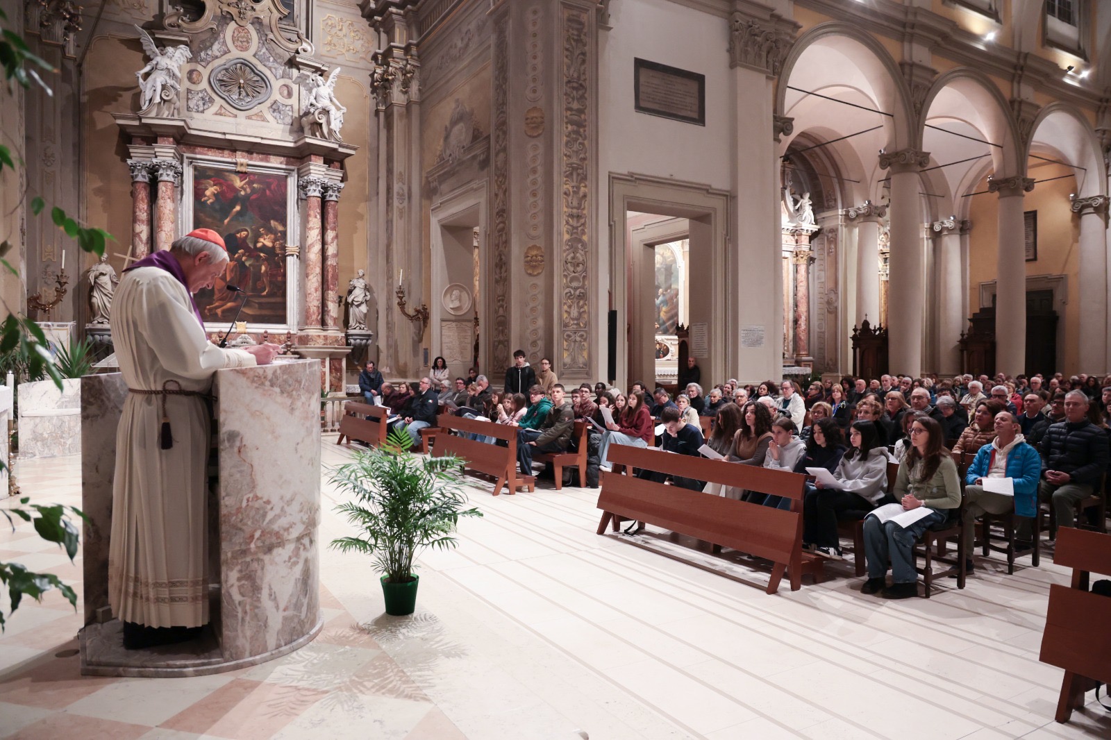 Venerdì 13 marzo alle 19 il cardinale Matteo Zuppi ha presieduto il Vespro nella Collegiata di San Biagio, a Cento, nella Giornata di digiuno e preghiera per la pace proposta dalla Conferenza Episcopale Italiana.
