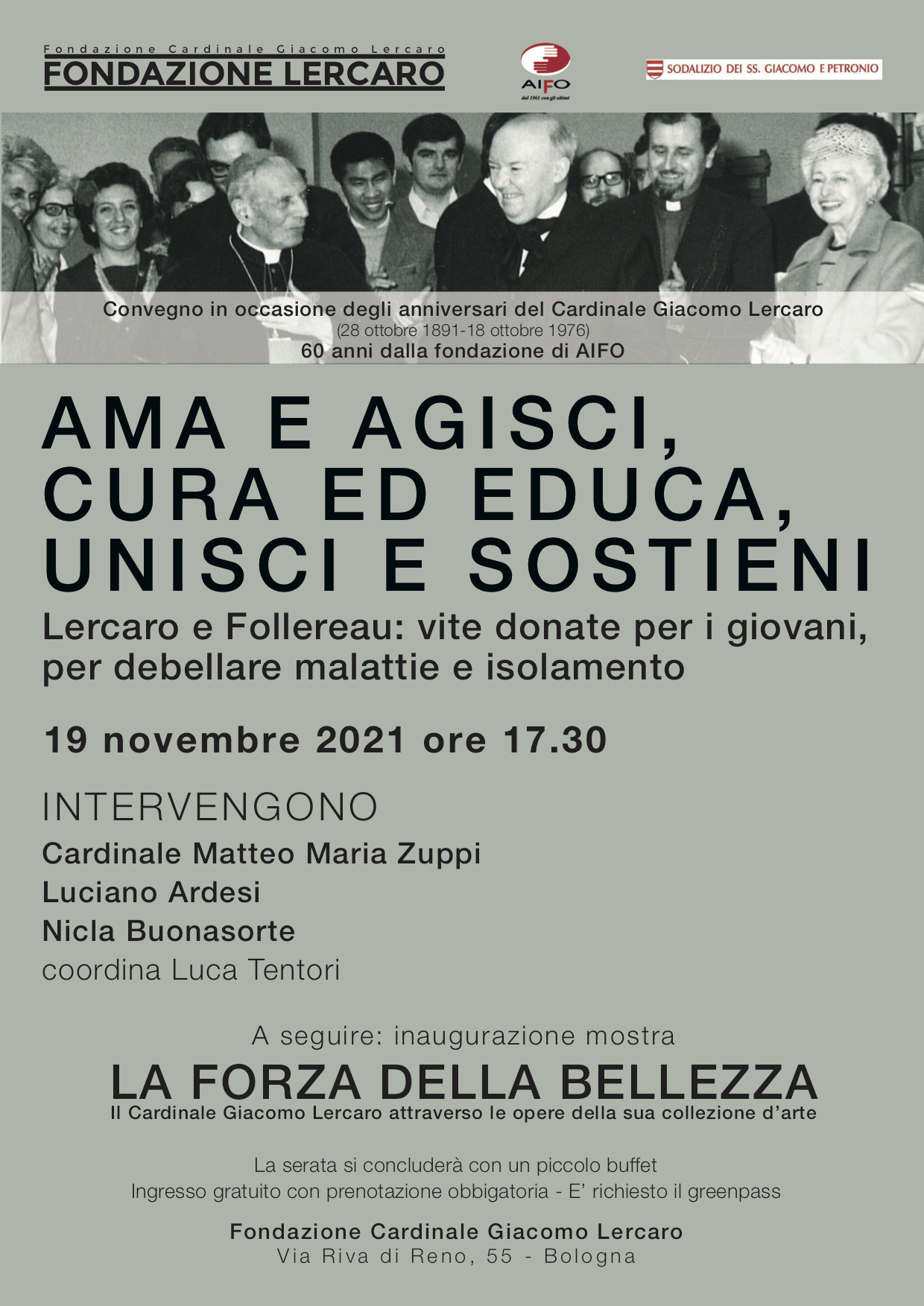 Venerdì 19 alle ore 17.30 nell’Aula Magna dell’Istituto “Veritatis Splendor” (via Riva di Reno, 55) si è tenuto il convegno “Ama e agisci, cura ed educa, unisci e sostieni. Lercaro e Follereau: vite donate per i giovani, per debellare malattie e isolamento”.