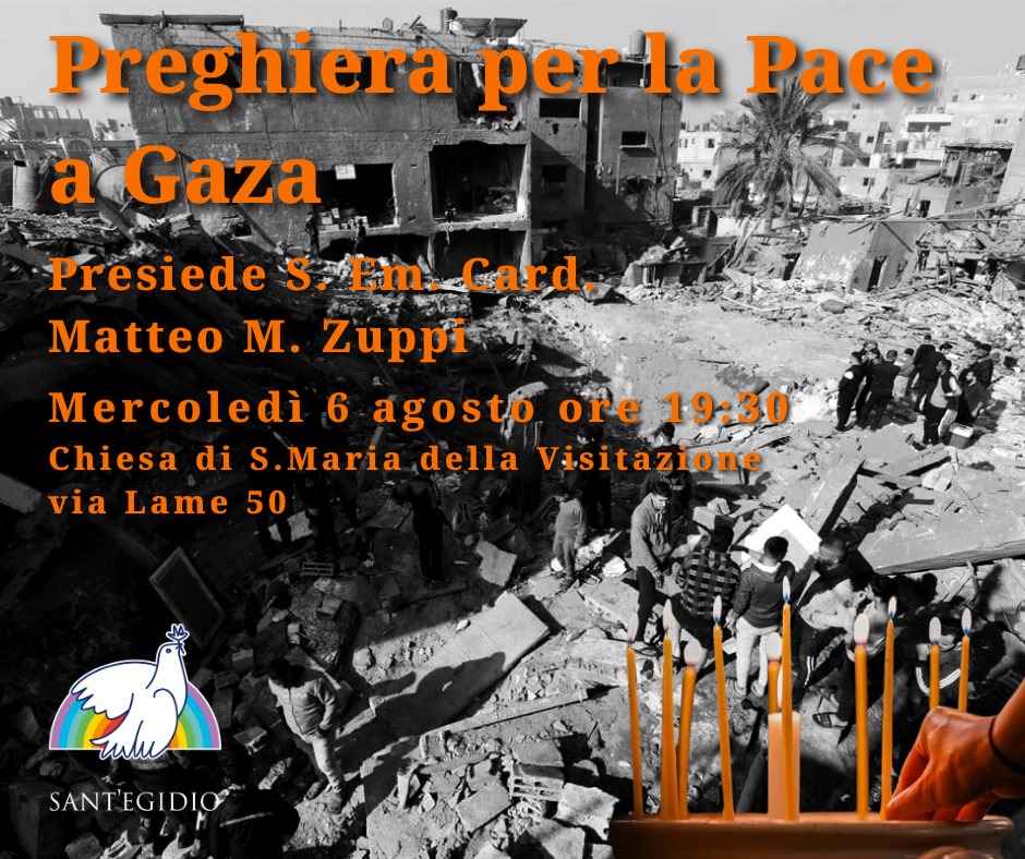 Nella chiesa di Santa Maria della Visitazione (via delle Lame,50) l’arcivescovo Matteo Zuppi ha guidato la preghiera per la pace a Gaza, promossa dalla Comunità di Sant’Egidio.