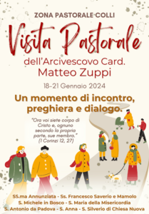 Zuppi 8 Gennaio 2024 Visita Pastorale Zona Colli giovedì 18 Gennaio Descrizione: Inizio: 18/01/2024 21:00 Fine: 21/01/2024 14:00 Categorie: Zuppi Allegati: Programma Indirizzo: Via San Mamolo 2, 40136 Bologna Città: Bologna Regione: Emilia-Romagna Paese: Italia Visita Pastorale Zona Collivia S.Mamolo 24, 40136 Bologna condividi su
