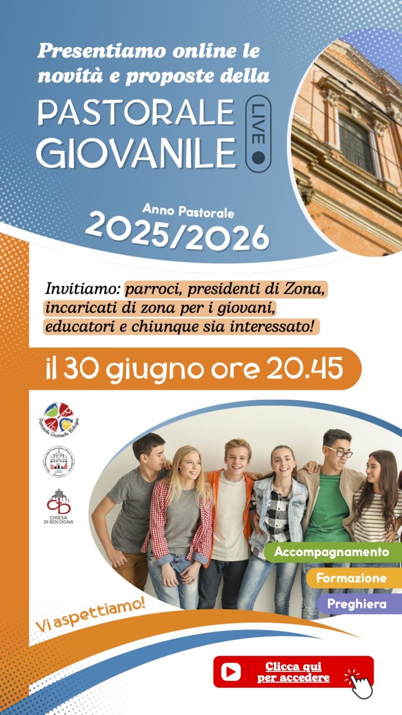 Eventi 27 Giugno 2025 lunedì 30 Giugno 20:45 Pastorale giovanile, presentazione online delle nuove iniziativeInizio: 30/06/2025 20:45