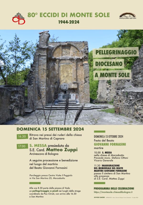 Eventi, Zuppi 3 Settembre 2024 domenica 15 Settembre 17:00 San Martino di Caprara, Messa nell’80º dell’eccidio di Monte SoleInizio: 15/09/2024 17:00