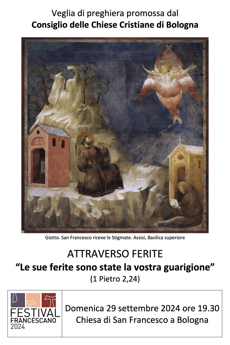 Eventi 27 Settembre 2024 domenica 29 Settembre 19:30 Attraverso ferite – veglia ecumenica al Festival francescanoInizio: 29/09/2024 19:30