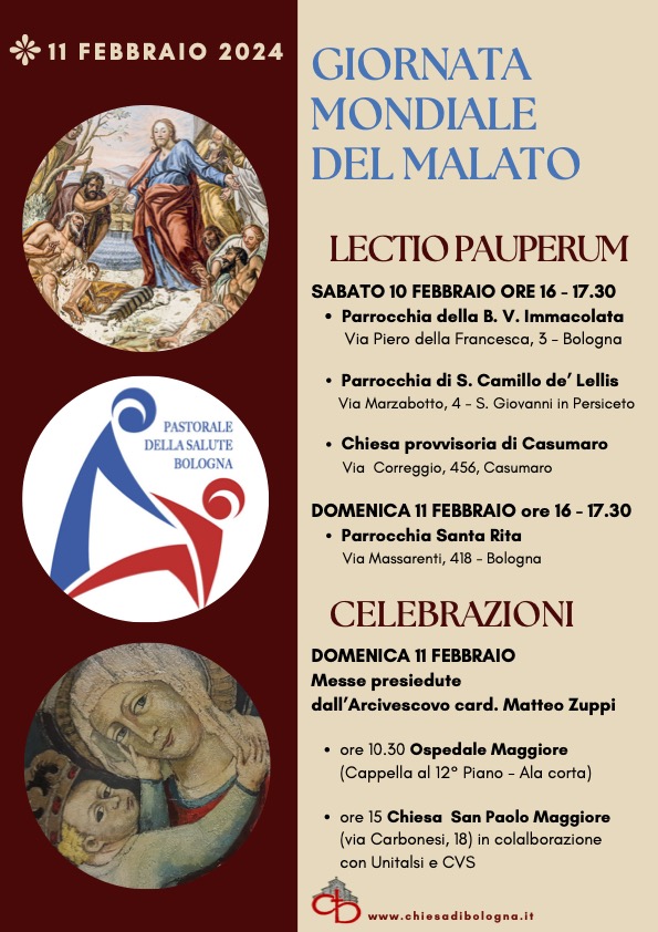 Eventi, Dalla Diocesi, Zuppi 24 Gennaio 2024 domenica 11 Febbraio 10:30 Giornata Mondiale del MalatoInizio: 11/02/2024 10:30